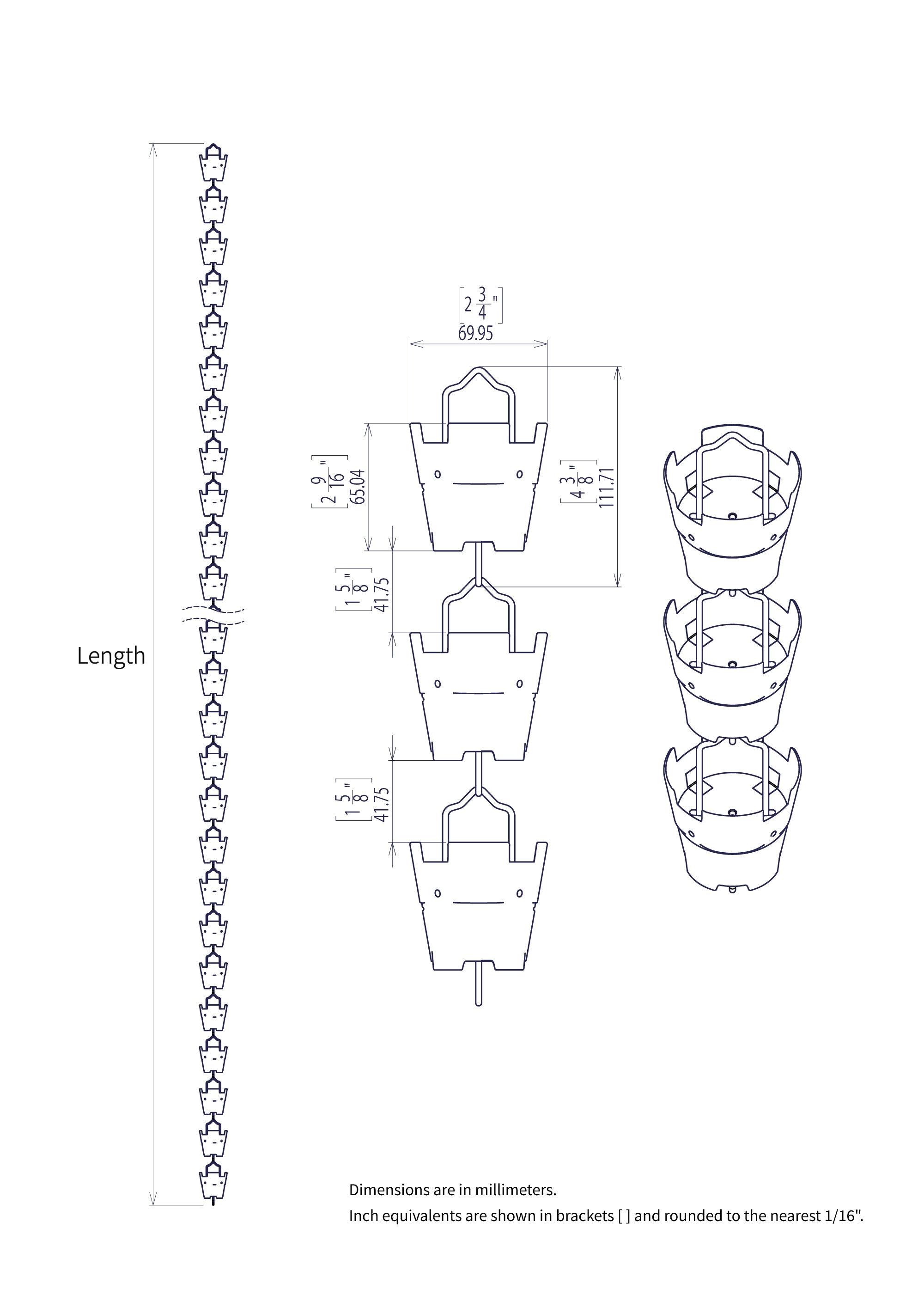 The approximate weight of the Ajiro Rain Chain by length is shown below.