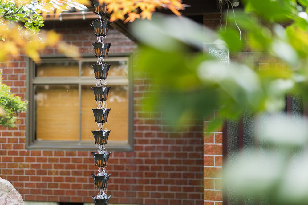 As the rain chain changes with the seasons, it brings a quiet character to your building. Outside of Japan, similar items are often sold as "Bronze Rain Chains," but most are actually made of copper. Our pure C1100 copper naturally develops that rich bronze tone over time, highlighting the material’s lasting elegance.