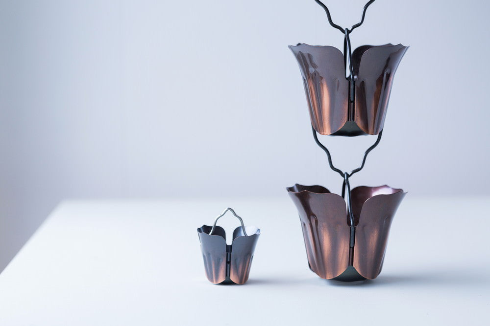 Migumo L Copper Rain Chain – Cup – Patinated Copper