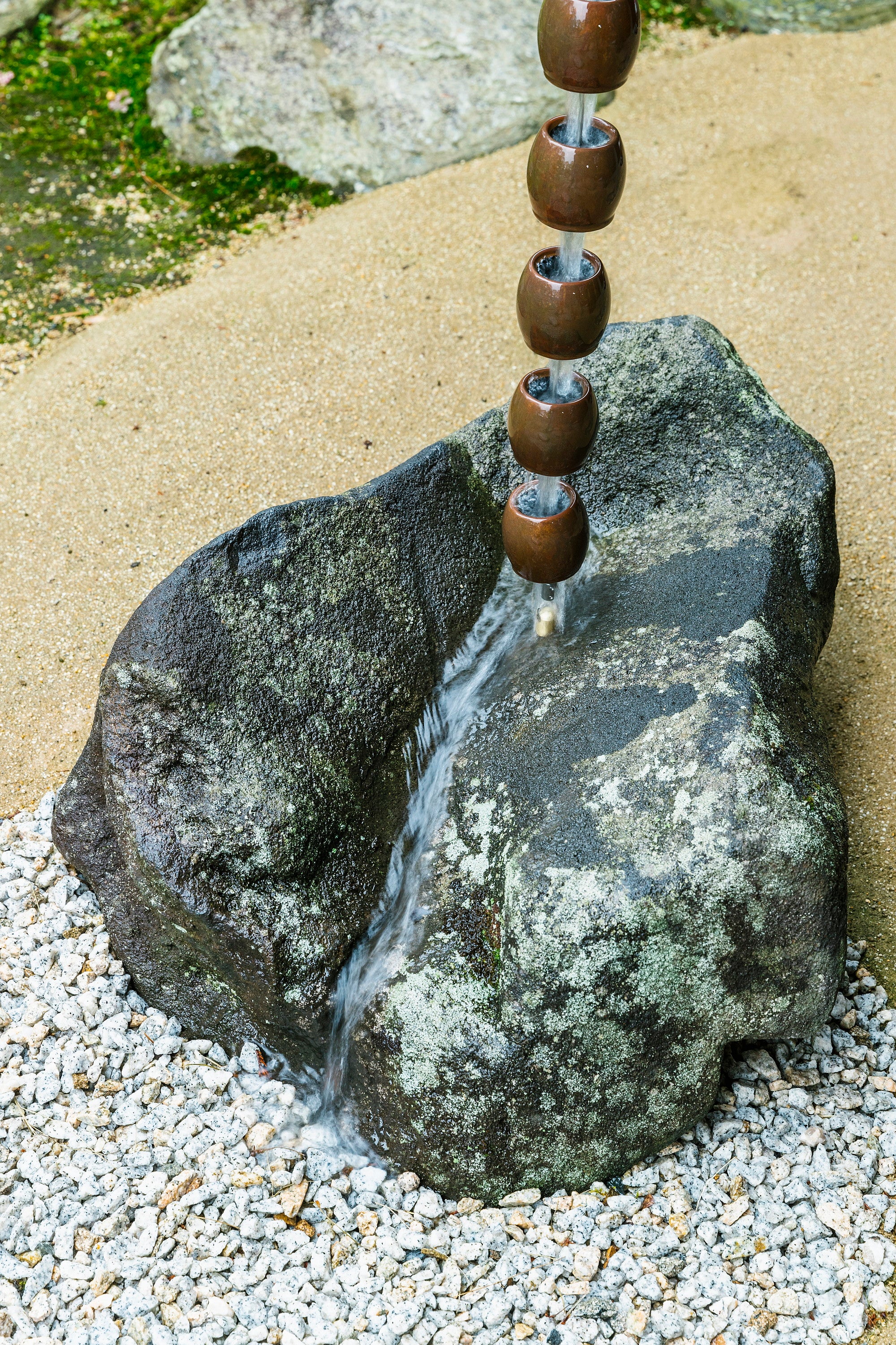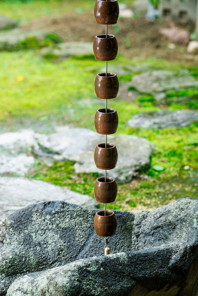 Tama is a rain chain made of linked, round, ball-shaped cups. The warm tones of the copper material add a natural presence to your building's exterior. Because the color changes over time, the chain will gradually blend in with your home and the surrounding landscape, becoming a true part of the scenery.