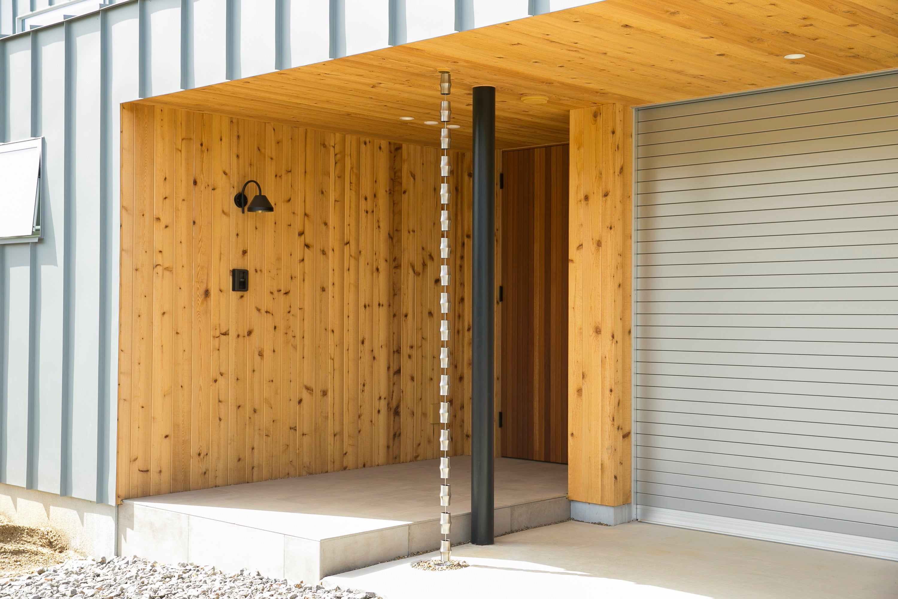 When it rains, water flows down through the inside of the links, becoming a soothing part of the view. This color blends well with surrounding materials. It is ideal for adding a defined look to your home without feeling too metallic.